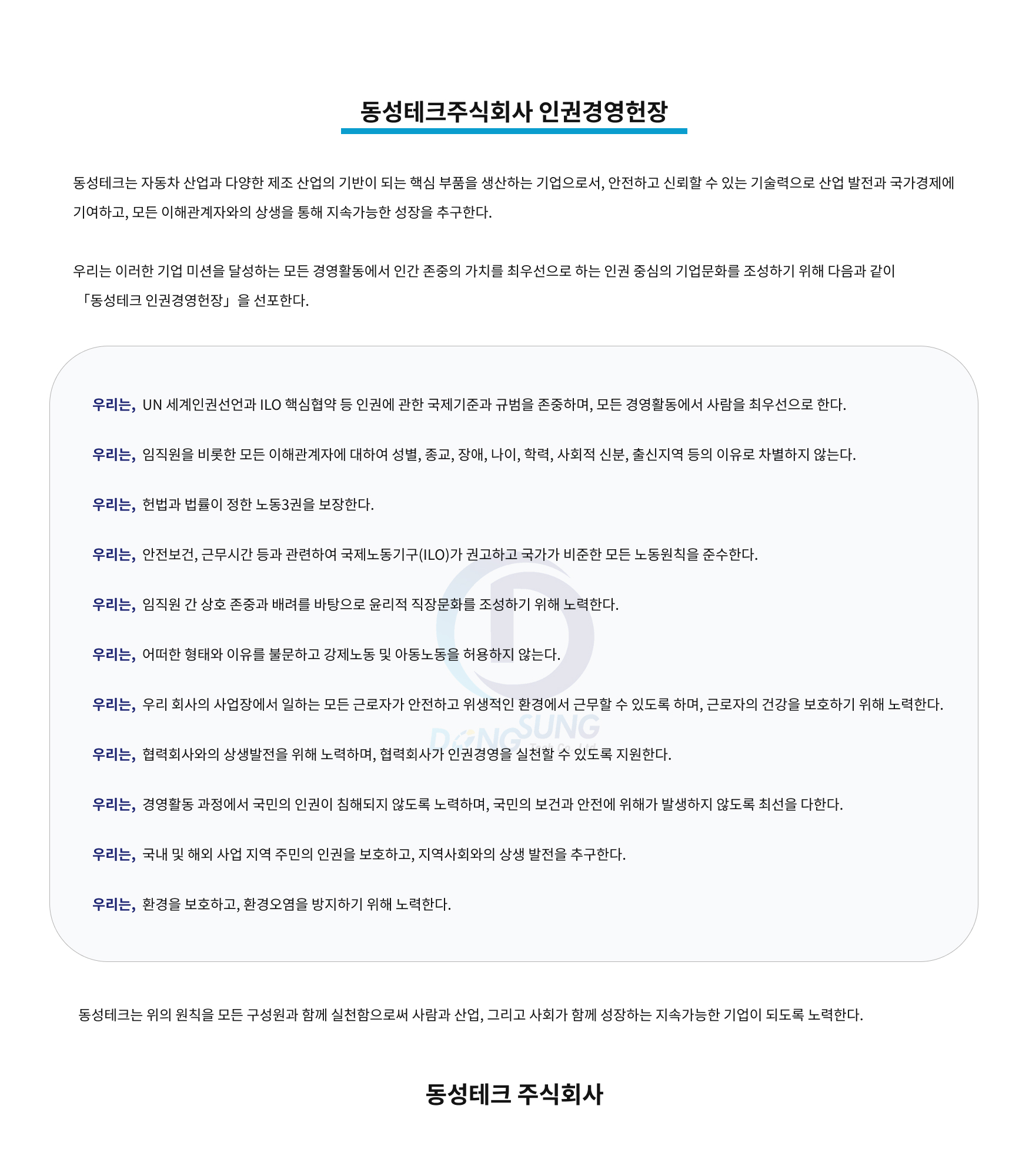 동성테크(주)는 1999년 창사 이후 자동차 제동장치와 구동 보조장치 생산 및 개발에 전념하고 있는 자동차 부품 기업입니다.